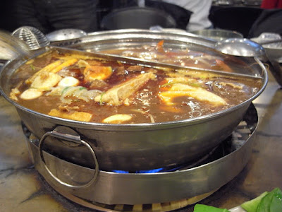 話說就在星期一,淑慧突然的登高一呼,說拜三晚上要吃火鍋,就這麼突然的動員,隨傳隨到的老骨頭就驟集了,冬天吃鍋大概是找這群人最好的方式。由於大家工作的關係,八點半才開鍋~~